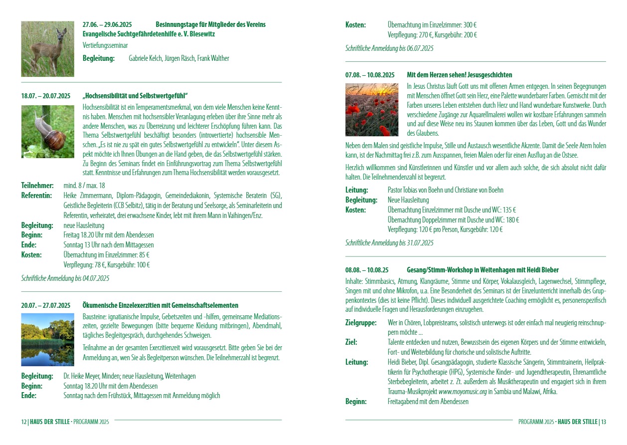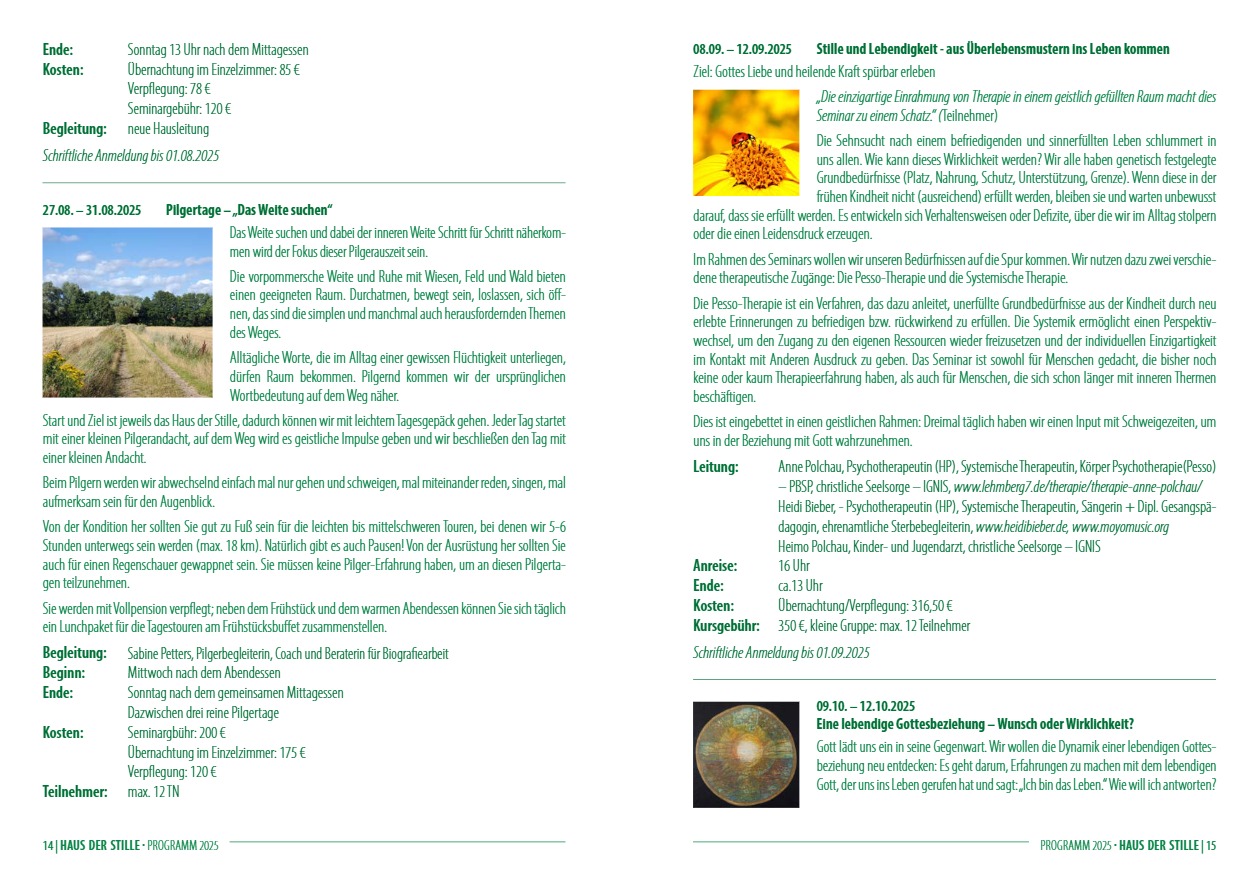 Gott begegnen – der eigenen Sehnsucht auf die Spur kommen – heil werden an Leib, Seele und Geist – persönliche Spiritualität entwickeln – geistliche Begleitung erfahren – Stille genießen